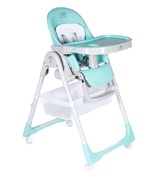 Стульчик Sweet Baby City комплектуется большой столешницей со съемным подносом. На таком столике удобно не только принимать пищу, но и заниматься творчеством. Под сиденьем устройства находится вместительная корзина для игрушек. Есть поворотные колеса с фиксатором. Стульчик регулируется по высоте на 7 уровнях.