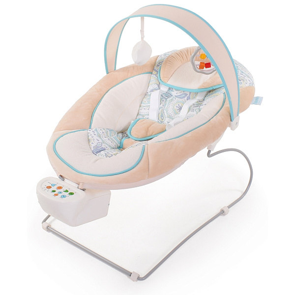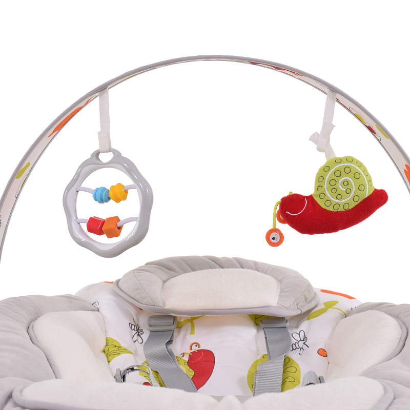 Новорожденный ангелочек будет приятно проводить время в комфортном шезлонге, пока мама отдыхает или готовит обед. Мягкое сиденье с эргономичной подушкой обеспечивает малышу удобство. Дуга с двумя развивающими игрушками веселит его, а проигрыватель звуков природы и колыбельных настраивает на позитивный лад.