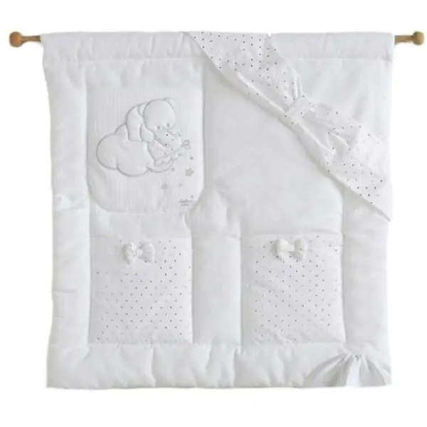 Великолепные банты, россыпь пайеток и роскошные аппликации в виде звезд – дизайн этого аксессуара очаровывает своей красотой. Кроме восхитительного внешнего вида карман-сумка для пижамы Italbaby Polvere di Stelle (Италбеби Полвере Ди Стелле) подкупает практичностью и удобством: он фиксируется на стенке колыбели и вмещает спальные принадлежности крохи. Изделие сшито из неаллергенного хлопкового текстиля и наполнителя в виде волокон полиэстера, которые хорошо держат форму и не допускают деформацию аксессуара. Приобрести карман Italbaby Polvere di Stelle (Италбеби Полвере Ди Стелле) позволит дополнить дизайн комнаты любимого чада по привлекательной цене. Аксессуар отличается высококлассным пошивом и отменной прочностью: он долгое время будет радовать родителей функциональностью и красотой.