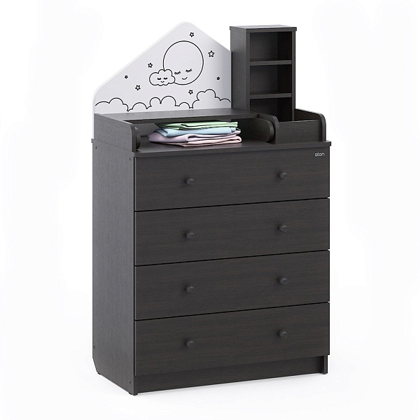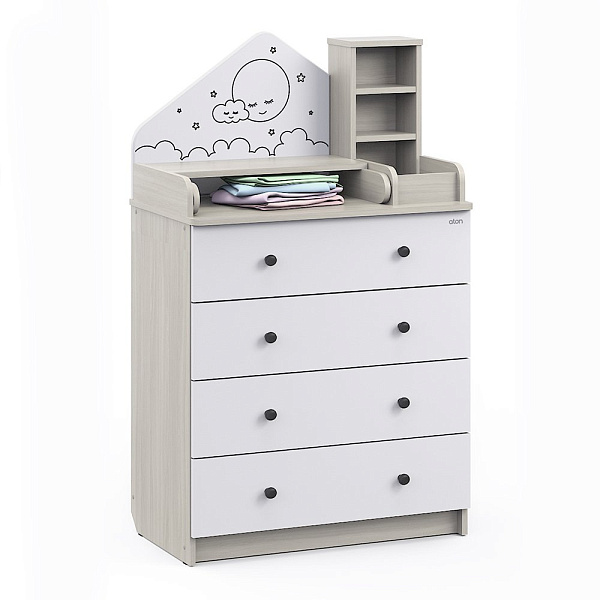 Комод-трансформер Атон Сириус ALF 804 ЛДСП — оригинальная мебель, которая сделает детскую комнату или уголок в доме удобным и уютным. Комод способен превращаться в детский столик. Есть пеленальный столик, который в разложенном виде превращается в удобное место для гигиенических процедур. Когда малыш подрастет, пеленальный столик без труда демонтируется. Для средств гигиены предусмотрены удобные небольшие полочки. У мамы всегда все будет под рукой. Дизайн комода классический, украшенный интересным «домиком», добавляющим мебели оригинальности.