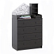 Все ящики комода помещены на шариковые направляющие. Ящики выдвигаются плавно и бесшумно. Специально для этой модели взяты черные металлические матовые ручки-кнопки. У верхней полочки есть три положения по высоте, которые при необходимости снимаются.