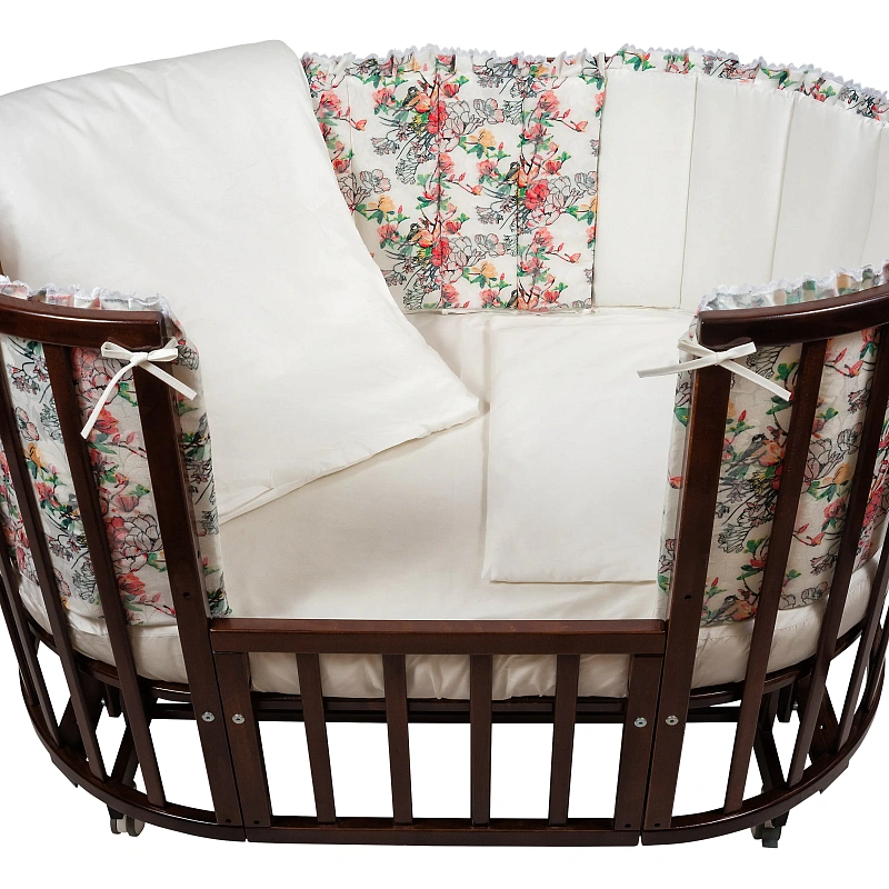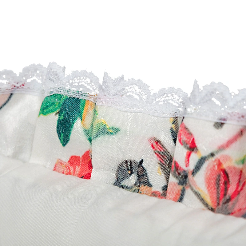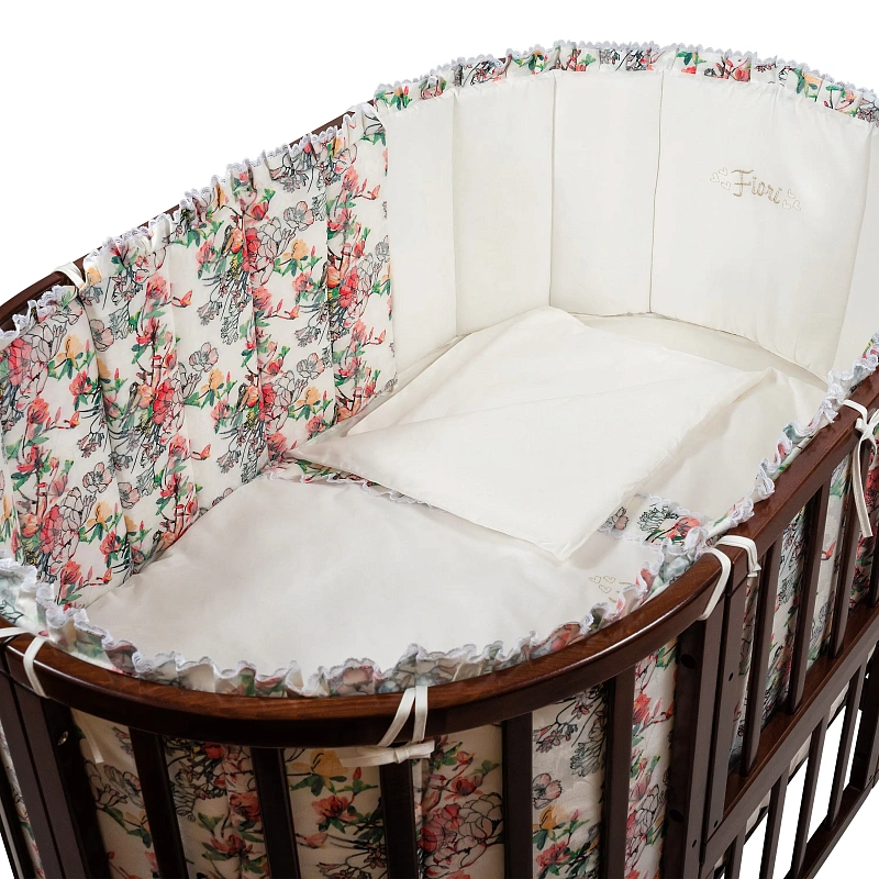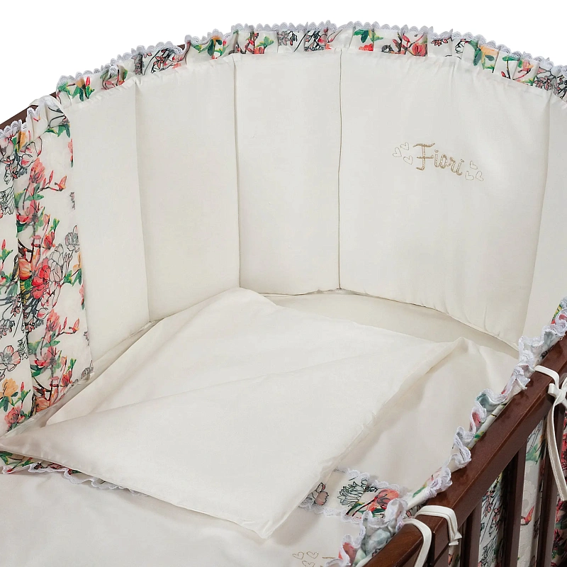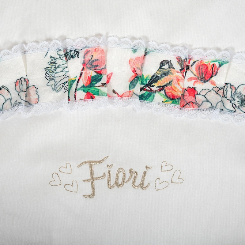 Комплект постели Nuovita Fiori для кроватки-трансформера от российского производителя Makkaroni Kids сшит из сатина, обладающего красивым шелковым блеском и роскошного жаккарда с бархатистой и гладкой текстурами. Главным украшением Nuovita Fiori стал красочный принт, который радует своей яркостью и оригинальностью. Дополнительными декорирующими деталями набора являются кружевные рюши и великолепная шелковая вышивка. Комплект постели в детскую кроватку Нуовита Фиори станет прекрасным убранством для спального места вашего малыша и подарит ему самые красочные сновидения.
