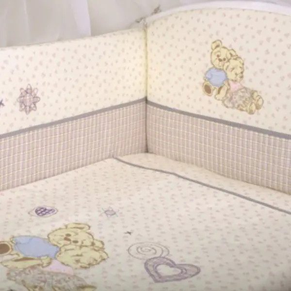 Комплект в детскую кроватку Lapetti Тедди, 6 предметов выдержан в спокойной бежевой гамме и украшен чудесными аппликациями в виде мишек Тедди. Производитель использует комбинацию тканей с разными рисунками и красивую декоративную окантовку. Все детали комплекта Lapetti Тедди выполнены из натурального сатина с гладкой, слегка шелковистой поверхностью. Ткань прекрасно стирается, не линяет и не деформируется при сушке. Набор Lapetti Тедди создает благоприятную атмосферу в спальне малыша и настраивает его на крепкий сон.