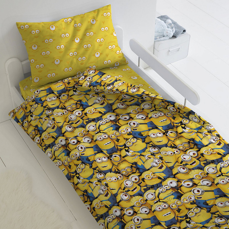 Полуторный комплект постельного белья состоит из простыни, пододеяльника и наволочки. Выполнен из бязи (100%-го хлопка). Плотность ткани — 120 г/м.