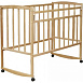 Эта модель сделана из березы — дерева, оно считается лучшим материалом для производства детской мебели. Основание выполнено из отдельных прочных реек, которые обеспечивают правильное положение спины малыша во время сна и полную вентиляцию спального места. Оно устанавливается в двух положениях. На верхнем уровне укладывают новорожденного младенца (подходит до 4-х месяцев жизни), а на нижнем — ребенка, который начинает самостоятельно садиться. Планка передней стенки плавно опускается на 20 см, обеспечивая родителям легкий доступ к карапузу.