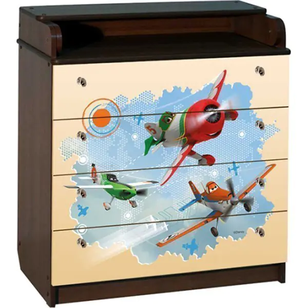 Пеленальный комод Disney КДП Самолеты с качественной фурнитурой от европейских производителей имеет сглаженные формы и эргономичные детали для 100-й % безопасности ребенка. Верхняя часть Disney КДП Самолеты — откидной пеленатор. На его широкой поверхности мама сможет переодевать кроху и менять ему подгузники. Пеленальный комод Дисней КДП Самолеты вместит в себя всю детскую одежду благодаря наличию четырех глубоких ящиков.