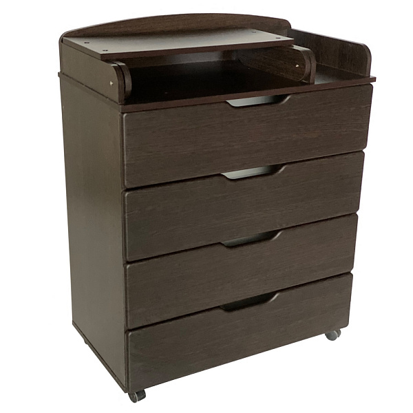 В комоде четыре больших и вместительных ящика на шариковых направляющих. Пеленальный столик раскладной с бортиками для безопасности и комфорта при проведении гигиенических процедур. Колесики делают мебель мобильной, комод можно передвигать по комнате и фиксировать в нужном месте. Гарантийный срок от производителя — 18 месяцев.