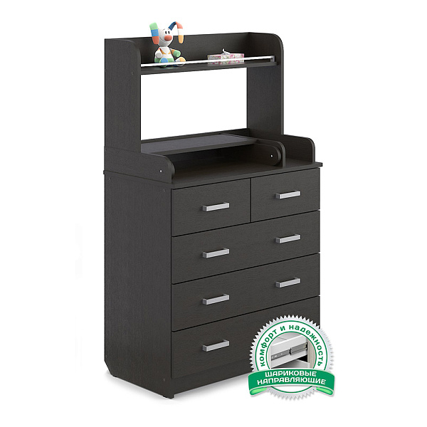Комод выделяется надстройкой с полкой и солидным выбором оттенков. Выполнен из ЛДСП, тщательно обработан и отделан для полной безопасности ребенка. Впишется в любой интерьер детской комнаты, спальни или уголка в жилой комнате.