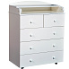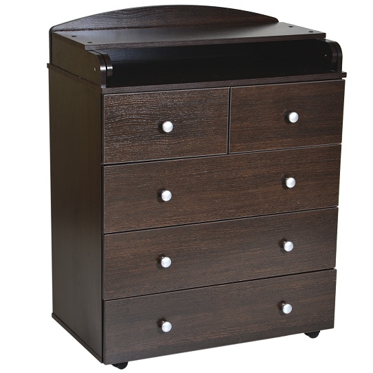Комод дополнен пеленальным столиком, оборудованным на верхней части комода. Пеленальная поверхность удобная и безопасная, позволяет маме пеленать, переодевать ребенка, проводить гигиенические процедуры, делать массаж.