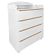 Верхняя крышка комода дополнена пеленальным столиком для переодевания малыша и проведения гигиенических процедур. Если нужно, его можно сложить и превратить комод в классический. Стильности в дизайне добавляют интегрированные ручки, придающие модели современный вид и практичность. Особенность комода – он выполнен из экологически чистого МДФ.