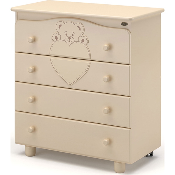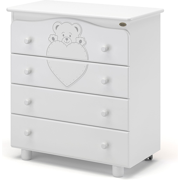 Детский пеленальный комод Nuovita Fortuna легко узнать, благодаря красивой большой аппликации с медвежонком и сердечком, декорированным стразами. Комод со съемным пеленатором будет красивым дополнением спальни карапуза, он вмещает много принадлежностей и детской одежды, а также помогает маме с комфортом переодевать малыша.