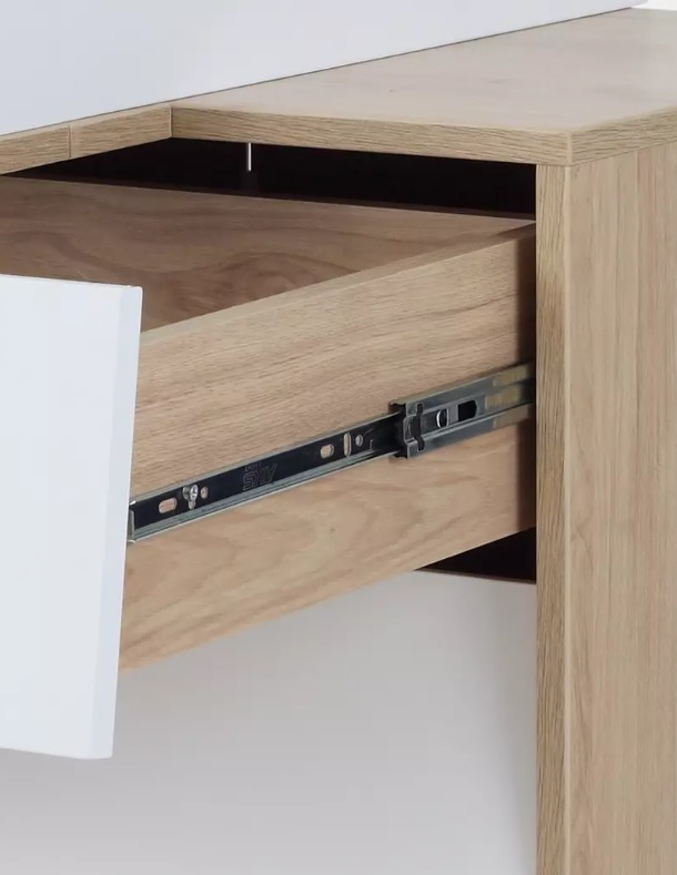 Пеленальный бортик эргономичен, фиксируется в ряде позиций по длине. Это позволяет установить его так, как удобно родителям. Сохранность детских вещей обеспечивают вместительные ящики на телескопических направляюших, которые гарантируют отсутствие шума и безопасность.