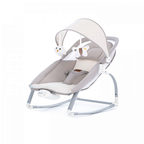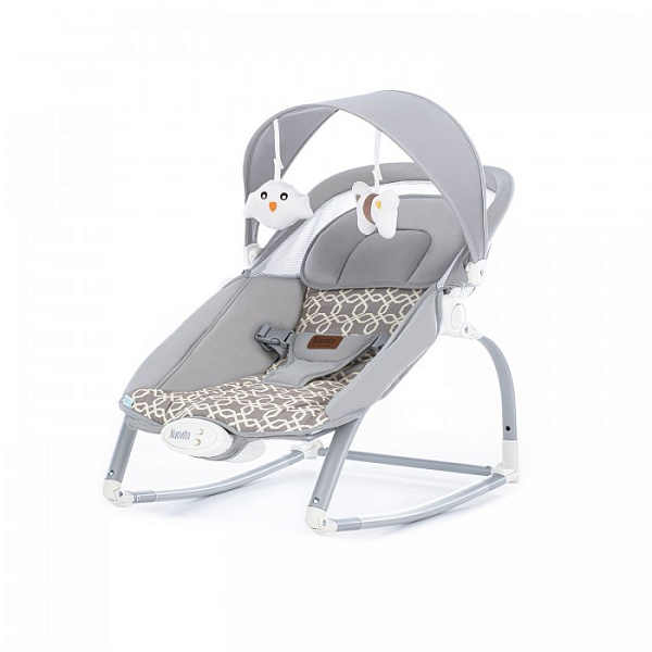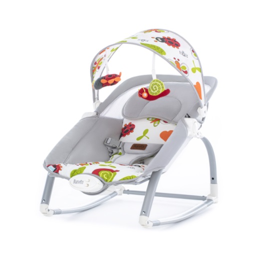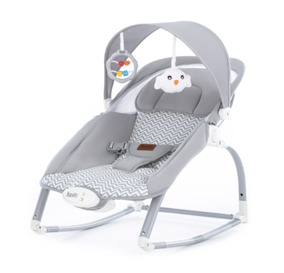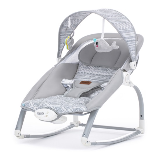 Шезлонг Nuovita Mese с функцией качания выпущен в 2021 году. Это уютное и компактное приспособление помогает родителям развлекать, успокаивать и убаюкивать новорожденного ребенка. Устройство украшают подвешенные на дуге-козырьке мягкие игрушки, развивающие малыша.