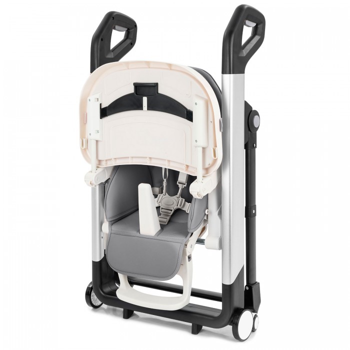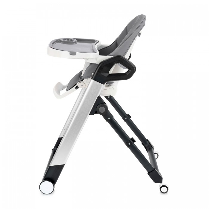 Стульчик для кормления достаточно компактен, экономит место на кухне или в другом помещении. Для удобства перемещения предусмотрено четыре колеса с мягким покрытием, не царапающим пол. Более того, колеса априори заблокированы. Блокировку можно снять, если нажать на рычаги, встроенные ручки, что может сделать только взрослый.