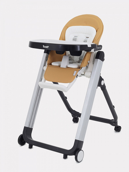 Стульчик для кормления Rant Onyx подходит малышам от 6 месяцев. В нем целых 8 положений сиденья по высоте. Спинка откидывается в 4 положения. Столешница регулируется по глубине и снимается, если нужно придвинуть ребенка к большому столу.